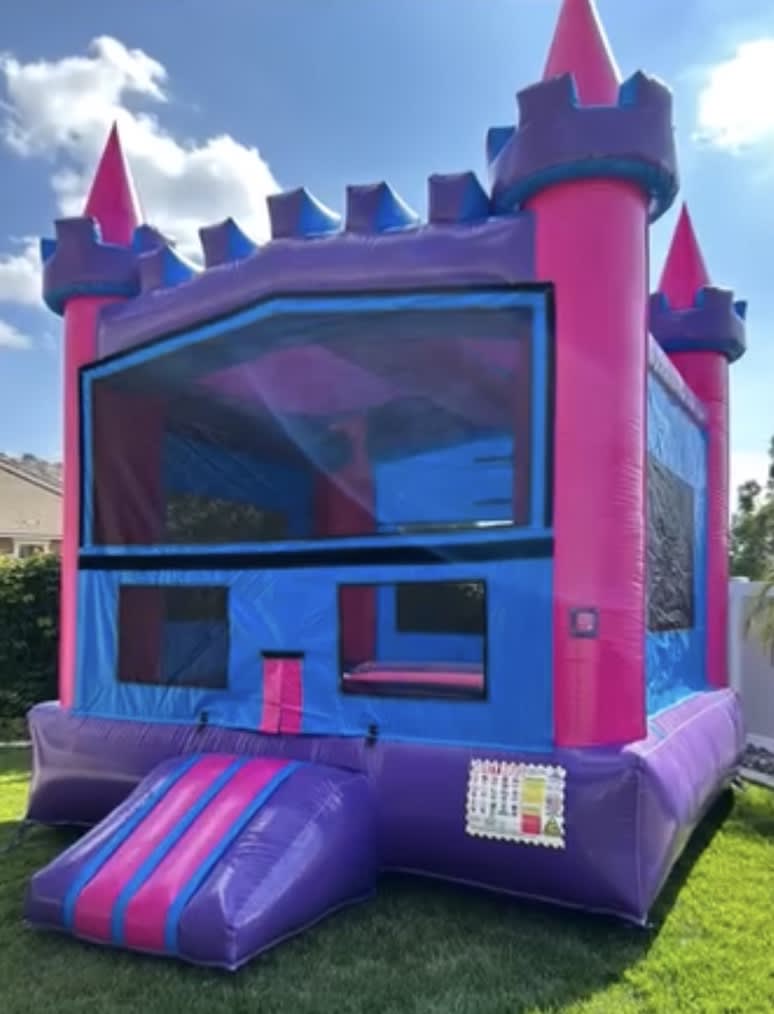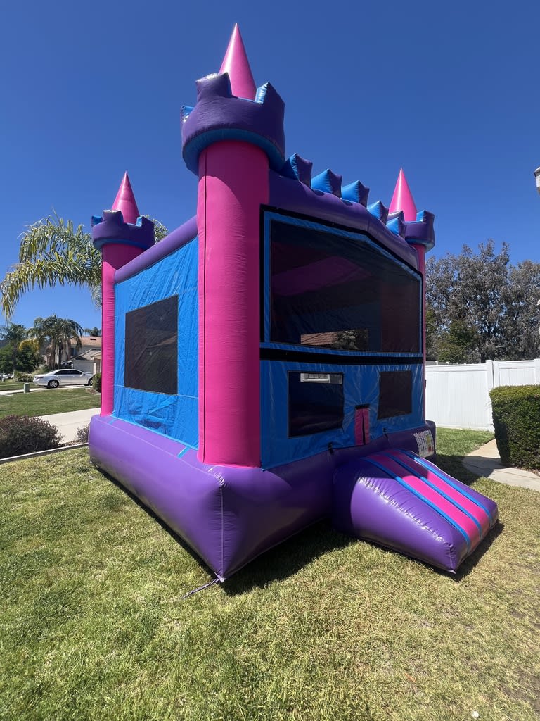 Booking is a breeze – reserve online, text, or call us at (951)600-8011. Proudly serving Temecula and neighboring cities, our Modular Jumpers offer various color options, including vibrant Standard Primary, engaging Castle with basketball hoop, charming Girl Modular, and Pink & Purple versions.Pink and Purple Castle Modular Jumper