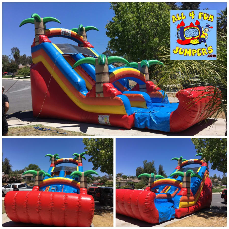 Don't miss out on the chance to add the 18ft Rainbow Tropical Slide DRY USE to your event in Temecula, Winchester, Canyon Lake, or any of our other delivery areas. Contact All 4 Fun Jumpers today to reserve this exciting attraction and make your event a memorable one! You are welcome to follow us on instagram or follow us on facebook to see all the fun stuff we are doing. You may get to know us through our amazing reviews on google and yelp! If you have any questions or need to reserve you may book online, call or text us to (951)600-8011, email us at info@all4funjumpers.com or contact here.