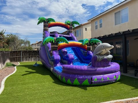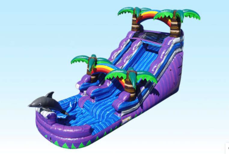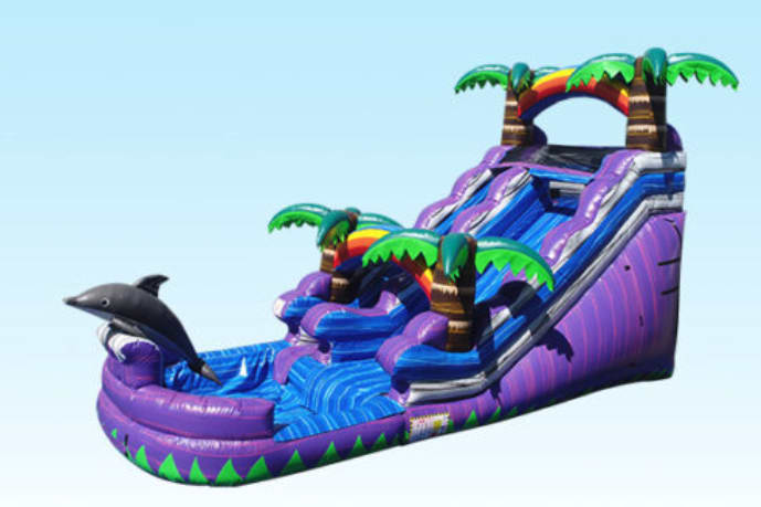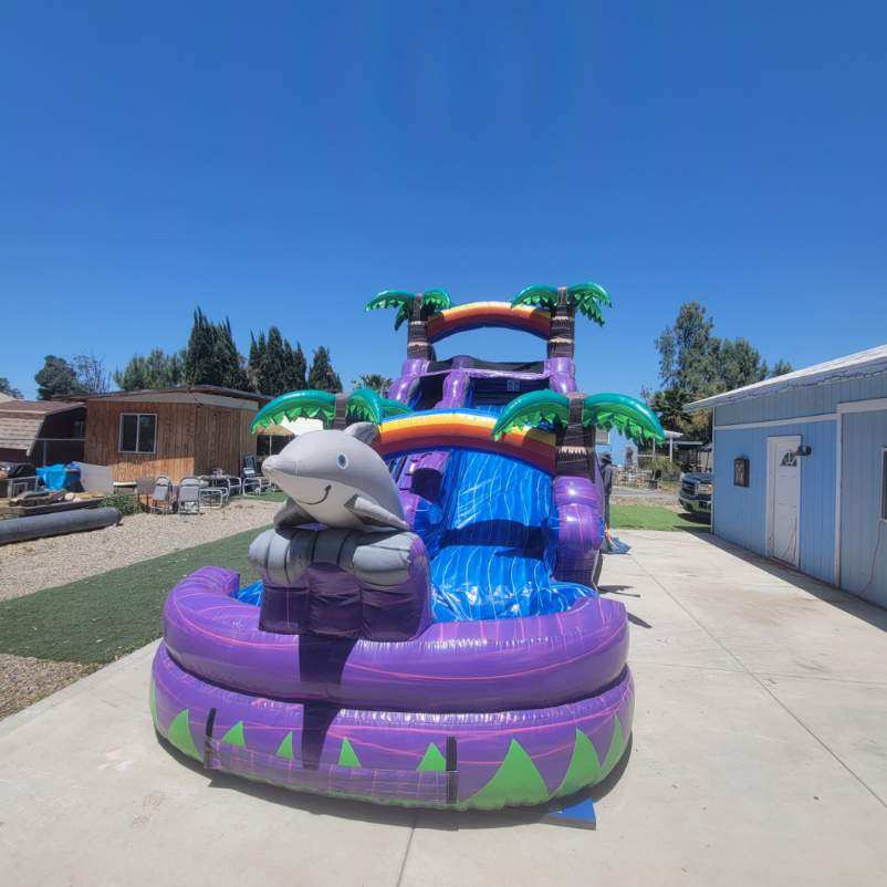 Immerse yourself in an exhilarating adventure with our Dolphin Slide at All 4 Fun Jumpers! This incredible slide stands tall at 15 feet, and with easy-to-access steps located upfront, you'll have a perfect view of the excitement. Our Dolphin Slide is designed for both safety and maximum enjoyment, providing a supervised and continuous sliding experience without the need to exit and re-enter.