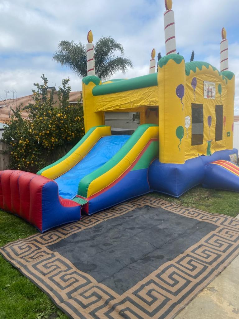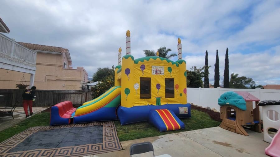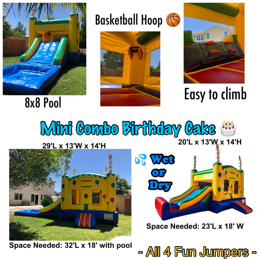 Introducing the versatile Birthday Cake Mini Combo – a dry slide featuring an inflatable basketball hoop inside, ready to infuse excitement into a variety of themes and events. From birthdays to celebrations of all kinds, this Mini Combo promises a memorable experience for everyone involved. But that's not all – we've also designed this Mini Combo to be adaptable for water use, taking the fun to a whole new level! So, whether you're planning a dry adventure or a water-soaked thrill, the Birthday Cake Mini Combo has you covered. Get ready for an incredible journey of joy and entertainment that can suit any occasion!