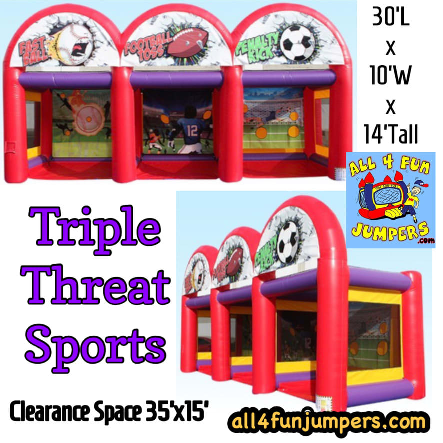 Get ready to unleash your inner athlete and test your skills with our Triple Threat Sports Game! Whether you're a seasoned sports enthusiast or just looking for some friendly competition, this inflatable game is the ultimate test of accuracy and precision.