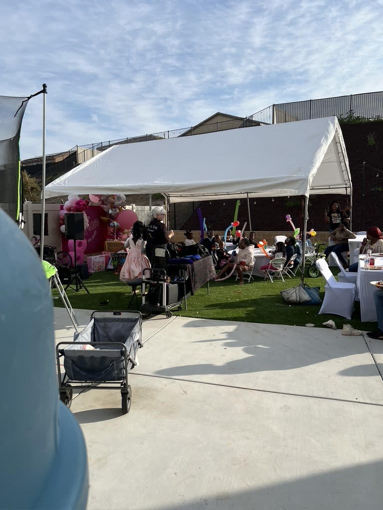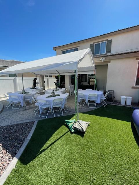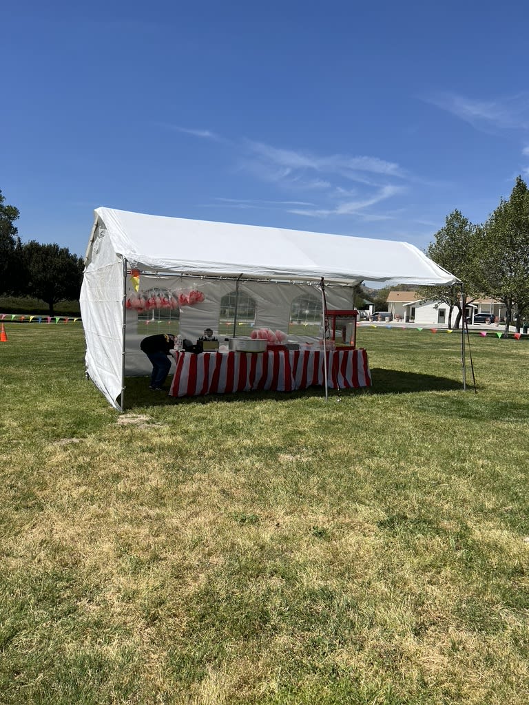 At All 4 Fun Jumpers, we are dedicated to providing comfort and convenience to your guests. Our 10' x 20' canopy can comfortably accommodate 4 rectangular 6ft long tables or 2 round 60" tables, ensuring your guests have ample seating and shade. You have the option to add one or more walls to provide even more shading for your event. Additionally, we offer lights to help you illuminate the night and create a beautiful ambiance. We suggest to add some fun: Axe Throw, Dart Soccer, Jumper or Jumper Slide Combo to keep the little ones busy. How about adding some delicious treats like a Cotton Candy, Popcorn or Nacho Machine.