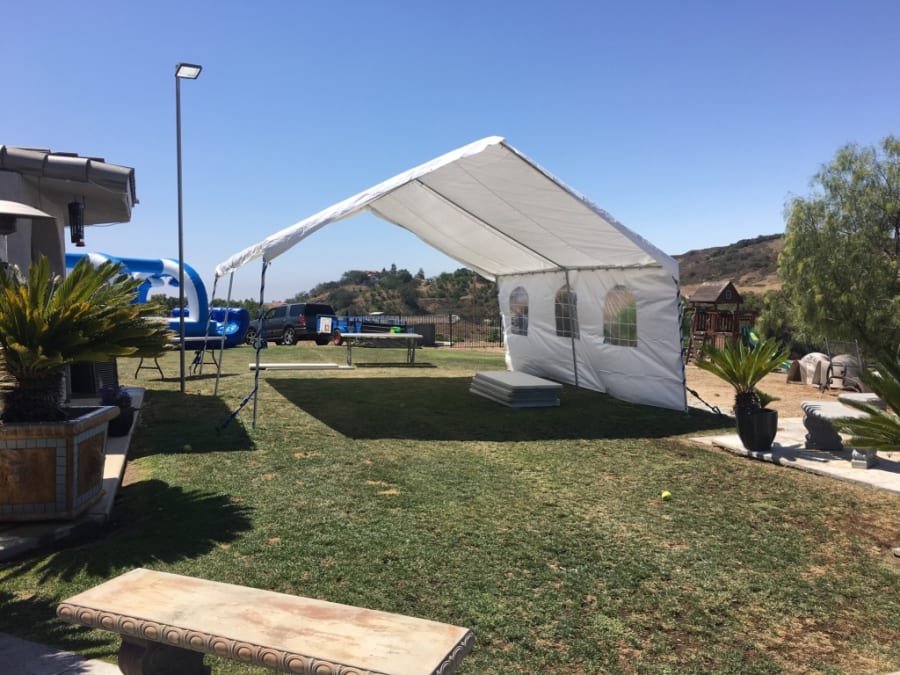 At All 4 Fun Jumpers, we understand the importance of providing comfort for your guests. That's why we offer a 20x20 ft canopy that can accommodate 5-6 rectangular 6ft long tables or 4 round 60" tables. But we don't stop there! We can go even bigger to suit your needs. Whether it's a sunny day or a chilly evening event, we've got you covered and you can add walls to your canopy. We provide lighting for those beautiful nights and sidewalls with windows for added warmth on colder days. We also suggest to help entertain your guest with some Lawn Games, our Criss Cross Basketball or Axe Throwing game. We love to serve residential and commercial customers for all their event needs. .