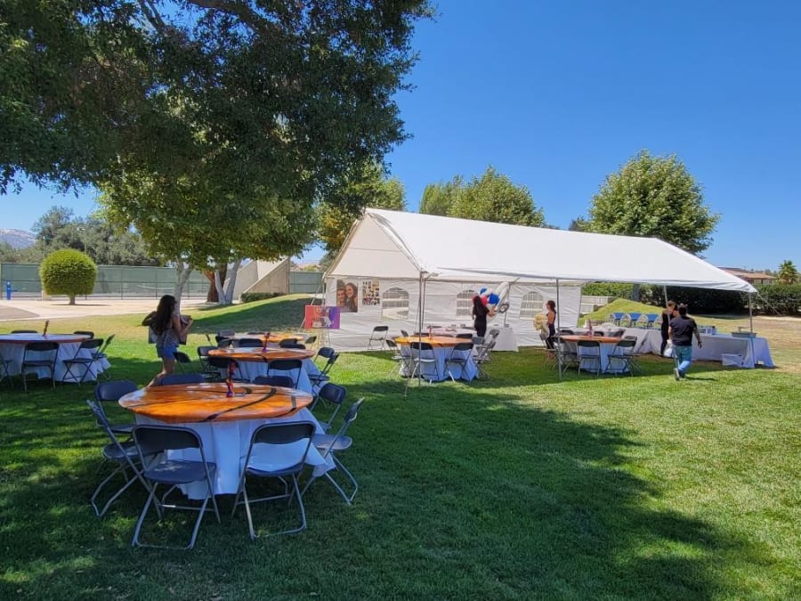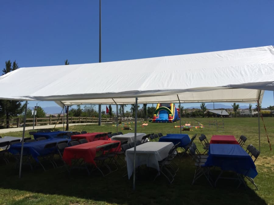At All 4 Fun Jumpers, we've got you covered with our 30x20 ft canopies for those events that need extra shade or a cozy comfort spot for your guests. This spacious canopy can accommodate 7-8 rectangular 6ft long tables or 6-7 round 60" tables, making it perfect for larger gatherings.