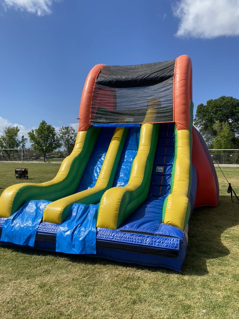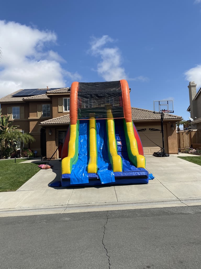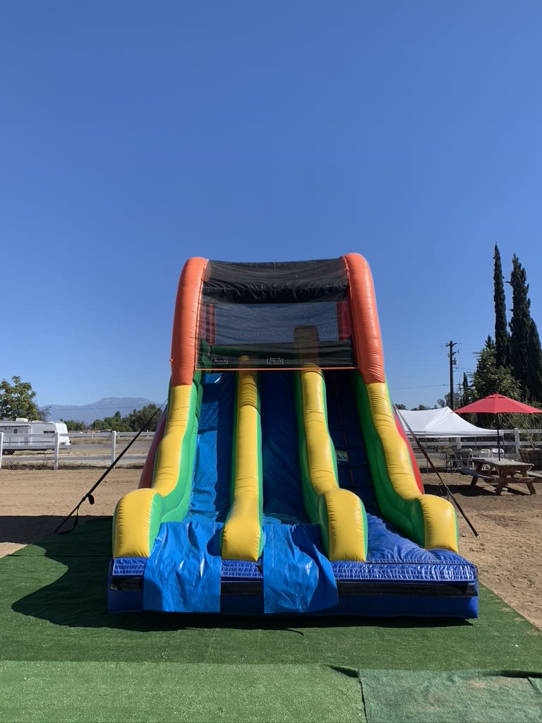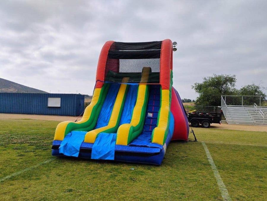 Introducing the All4 Fun Jumpers 17-foot Dual Lane Dry Slide, the ultimate addition to your backyard parties, birthday celebrations, church functions, school events, weddings, and business gatherings. With two exciting lanes, guests can enjoy double the fun as they slide down simultaneously, making it ideal for all social gatherings in Murrieta, Temecula, Menifee, Wildomar, Winchester and across to Nuevo, Perris, Hemet and more of the surrounding cities.