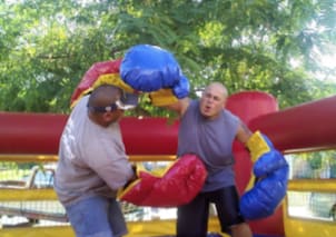 DING DING! The bell has sounded, and the excitement begins! Gather your friends and jump into fun and play with All 4 Fun Jumpers BOXING RING Giant Gloves.Experience the adrenaline rush as you step into the ring, put on the gloves, and engage in some friendly competition. Unleash your inner champion and have a blast while everyone at your event cheers and laughs.