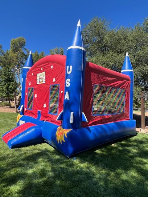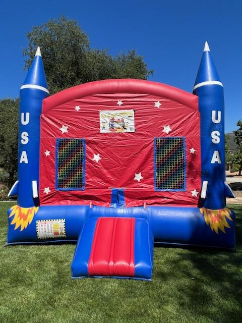 Introducing the USA Rocket Jumper from All 4 Fun Jumpers – a thrilling space adventure awaits as kids launch into imaginative journeys through the cosmos with rockets on each side. This captivating jumper is the perfect fit for space-themed parties, solar system explorations, 4th of July celebrations, rocket-themed events, and more. Watch as their creativity takes flight, propelled by the excitement of the USA Rocket Jumper Bouncer. And there's an extra layer of fun with an inflatable basketball hoop inside, adding an exciting dimension beyond jumping.