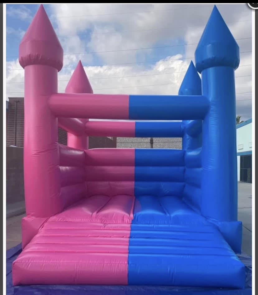 Celebrate your upcoming arrival with our 13x13 Gender Reveal Jumper, a bright pink and blue castle-style inflatable that brings fun and excitement to any baby-themed celebration. Its cheerful colors make it a perfect match for gender reveal parties, baby showers, and family gatherings. The open bounce area provides plenty of space for children to jump and play safely while adults enjoy the celebration.