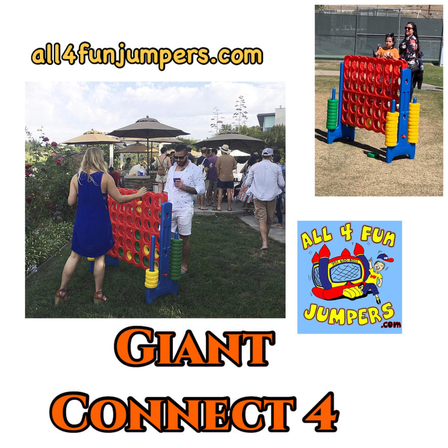 All 4 Fun Jumpers offers the exciting Jumbo Connect 4 game for your outdoor events in Los Angeles, CA. This oversized version of the classic board game brings a unique twist to traditional gameplay. Players of all ages can connect four pieces vertically, horizontally, or diagonally, adding a thrilling challenge to your gatherings.