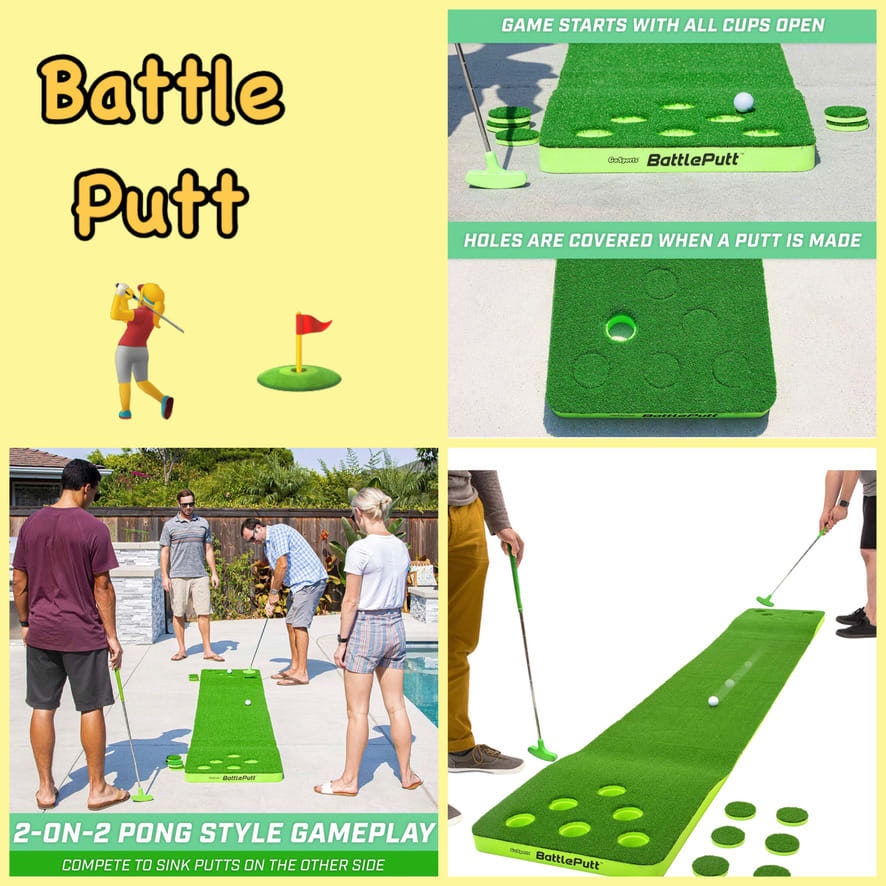 "Battle Putt" by All 4 Fun Jumpers is an exciting 2-on-2 pong-style golf game perfect for home parties, corporate gatherings, church functions, tailgate parties, and carnivals. Elevate your event with our diverse range of Jumpers, Jumpers with Slides, Interactive Games, and Carnival Games. We also offer Tables, Chairs, Canopies, and more to ensure a successful and enjoyable experience.