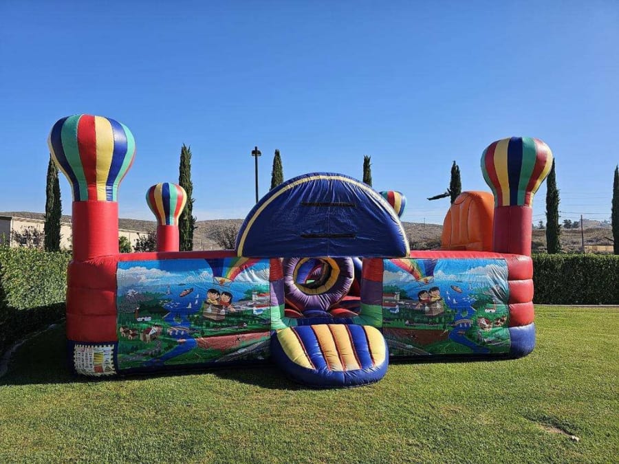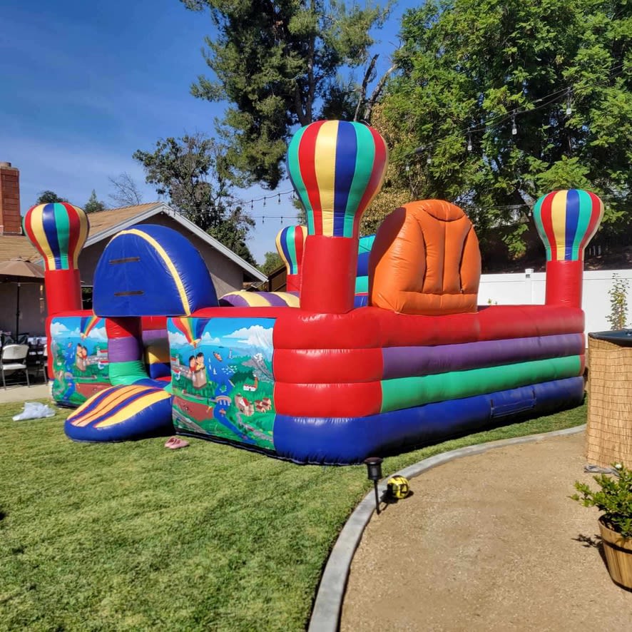 Our Playground inflatable is jam-packed with engaging features, including an inflatable horse, a basketball hoop for shooting some hoops, tunnels for adventure, slides for thrilling rides, and a ball pit to dive into endless fun. The hot air balloon theme adds an extra layer of charm, allowing kids to embark on imaginative journeys as if they're soaring up high in a balloon.