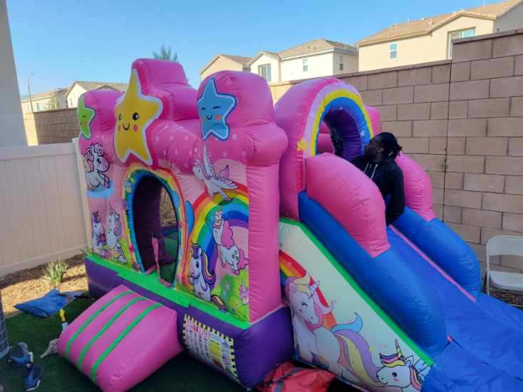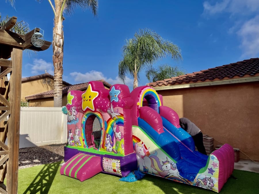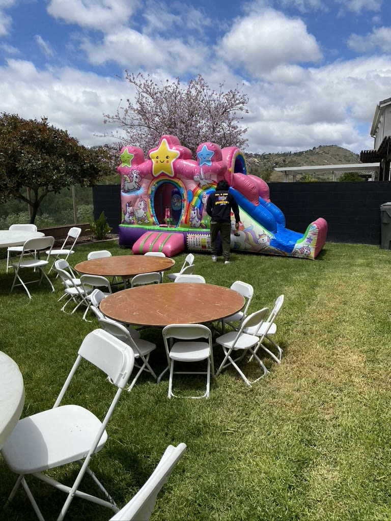 Rest assured, our inflatables meet top safety standards, ensuring lead-free, sanitized, and fire-safety compliant experiences at an affordable price. We're licensed and insured for various venues, including parks, schools, and wedding locations, and we serve different cities such as Menifee, Temecula, Murrieta, Winchester, Wildomar, Lake Elsinore, Canyon Lake, Nuevo, and more. Explore our impressive reviews and active social media presence on Google, Facebook, Yelp, and Instagram, reflecting our dedication to customer satisfaction.