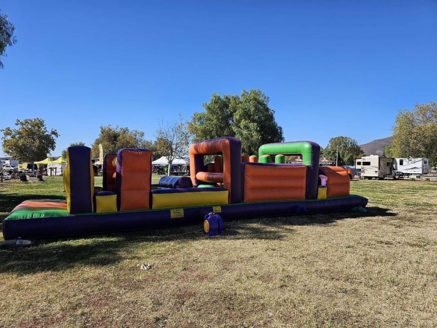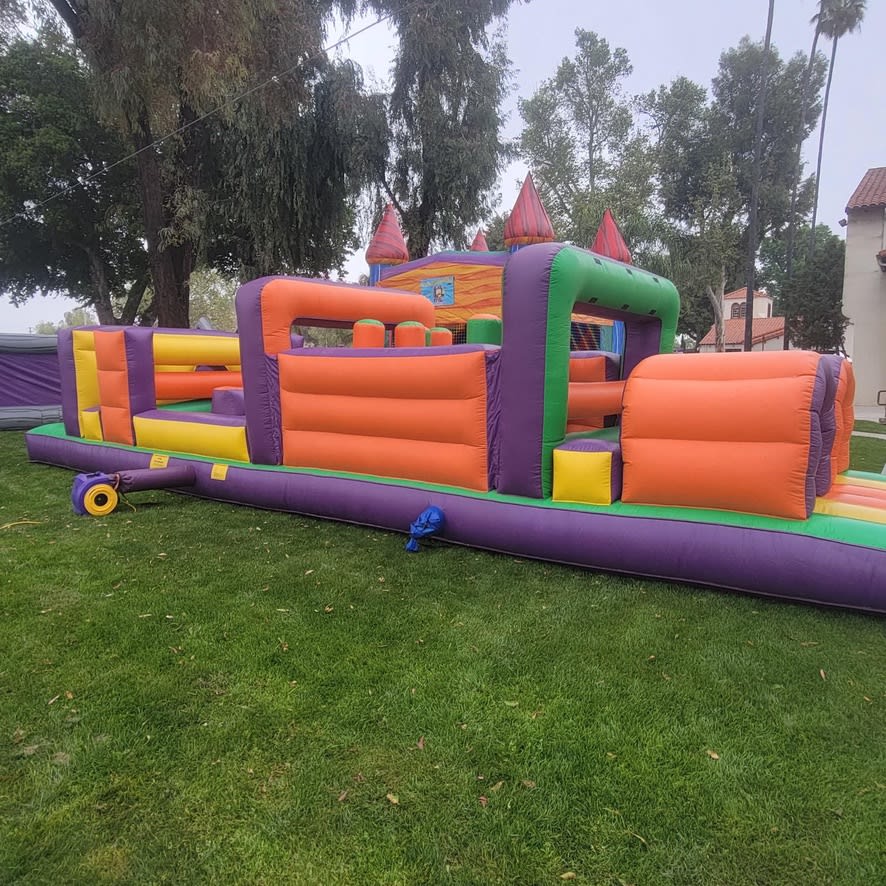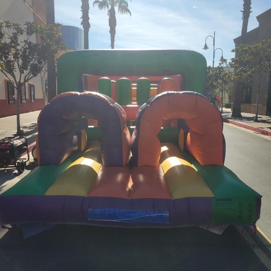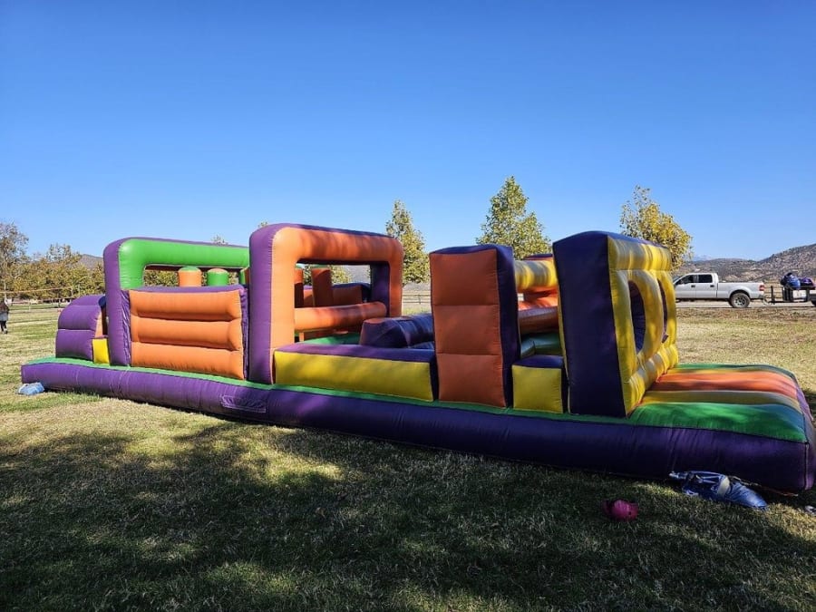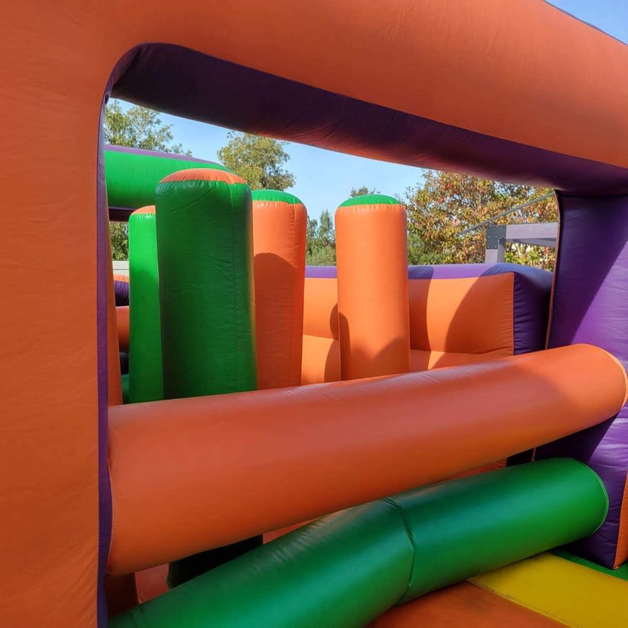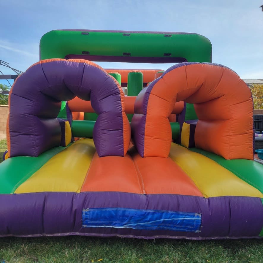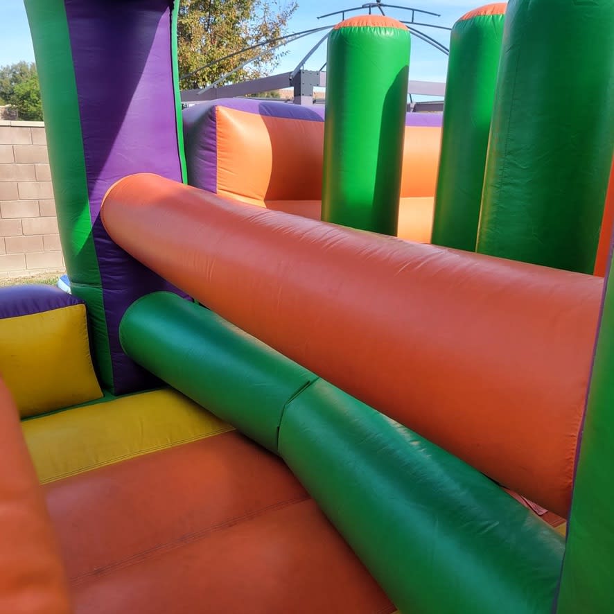 At All 4 Fun Jumpers, we prioritize continuous entertainment and keeping kids happy. Our Colorful 40ft Obstacle Course is perfect for this purpose. Kids can go through this exciting 40-foot obstacle course, challenging themselves by navigating through pillars, climbers, and other obstacles. The Colorful Obstacle Course is suitable for various events, including backyard birthday parties, family reunions, holidays, schools, churches, and corporate events. Check out our other entertainment options like Hippo Chow Down, Triple Threat Sports, Velcro Wall, or even additional Jumpers and Jumper-Slide Combos. We're your one-stop shop, offering Tables and Chairs, Tablecloths, Concessions/Food Machines, Canopies/Tents, and more to assist with your setup. All 4 Fun Jumpers is you one stop party rental shop!