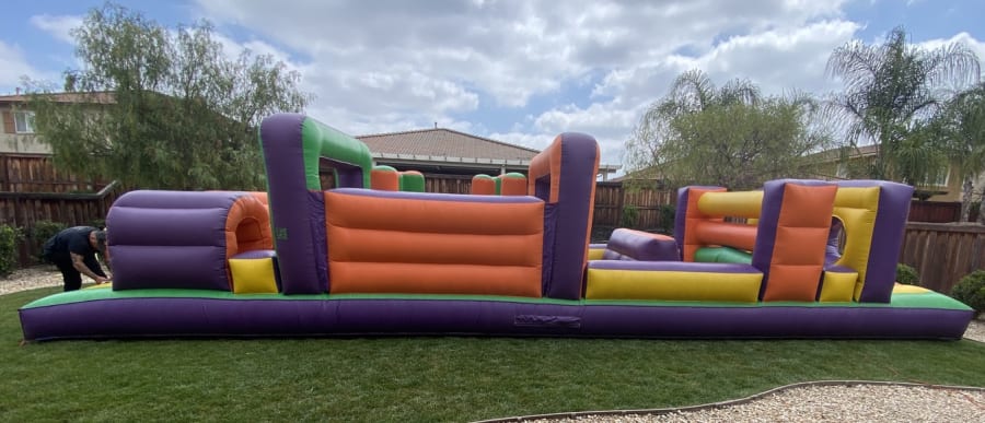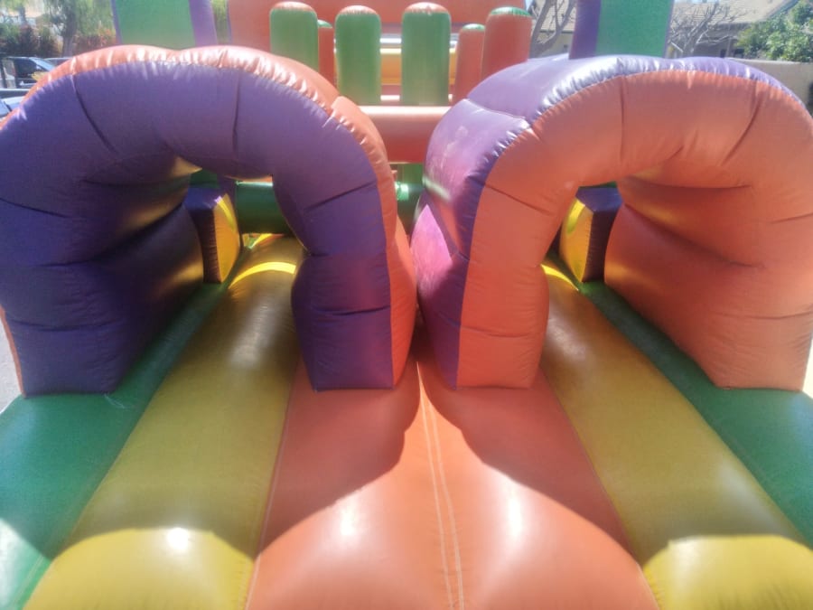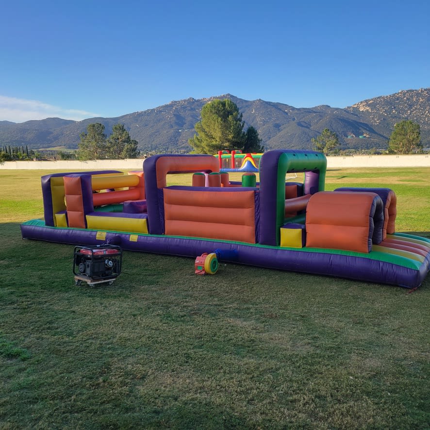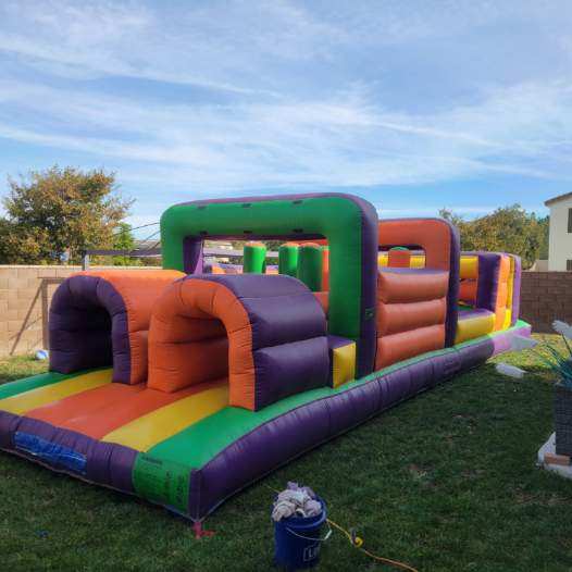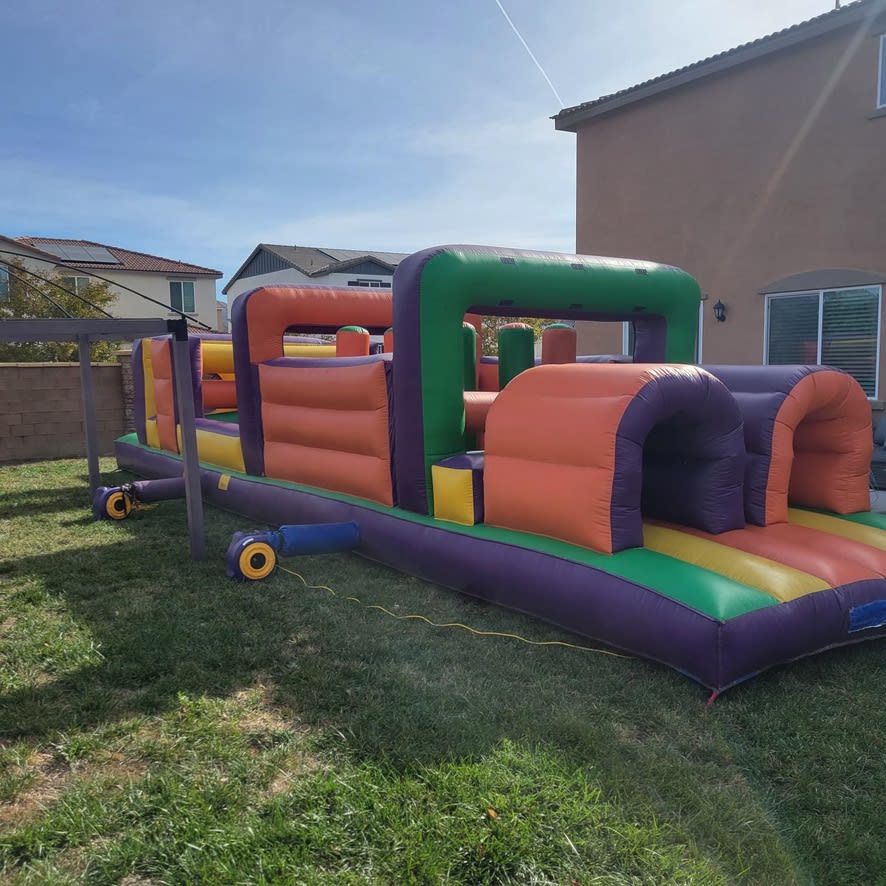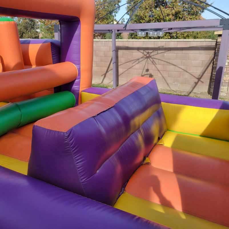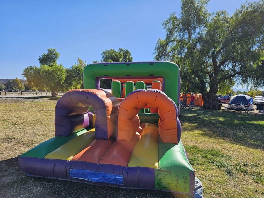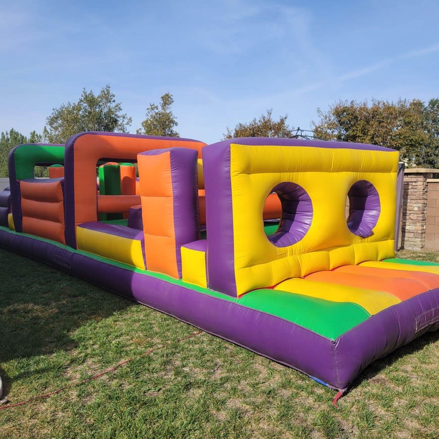 At All 4 Fun Jumpers, we prioritize continuous entertainment and keeping kids happy. Our Colorful 40ft Obstacle Course is perfect for this purpose. Kids can go through this exciting 40-foot obstacle course, challenging themselves by navigating through pillars, climbers, and other obstacles. The Colorful Obstacle Course is suitable for various events, including backyard birthday parties, family reunions, holidays, schools, churches, and corporate events. Check out our other entertainment options like Hippo Chow Down, Triple Threat Sports, Velcro Wall, or even additional Jumpers and Jumper-Slide Combos. We're your one-stop shop, offering Tables and Chairs, Tablecloths, Concessions/Food Machines, Canopies/Tents, and more to assist with your setup. All 4 Fun Jumpers is you one stop party rental shop!