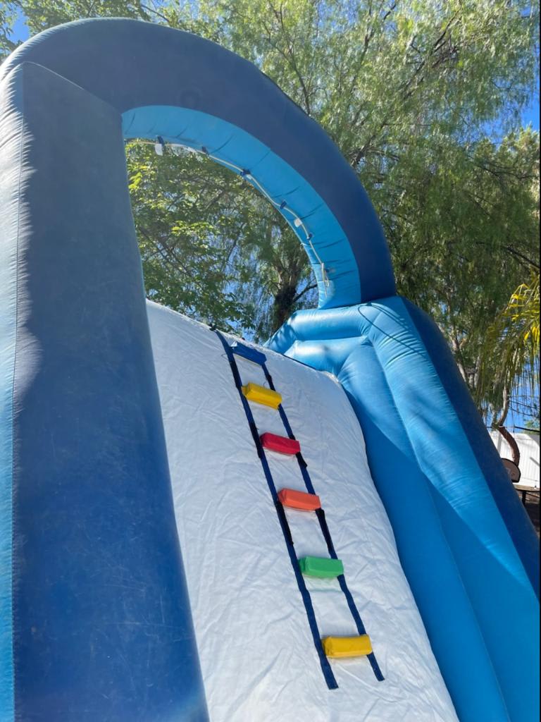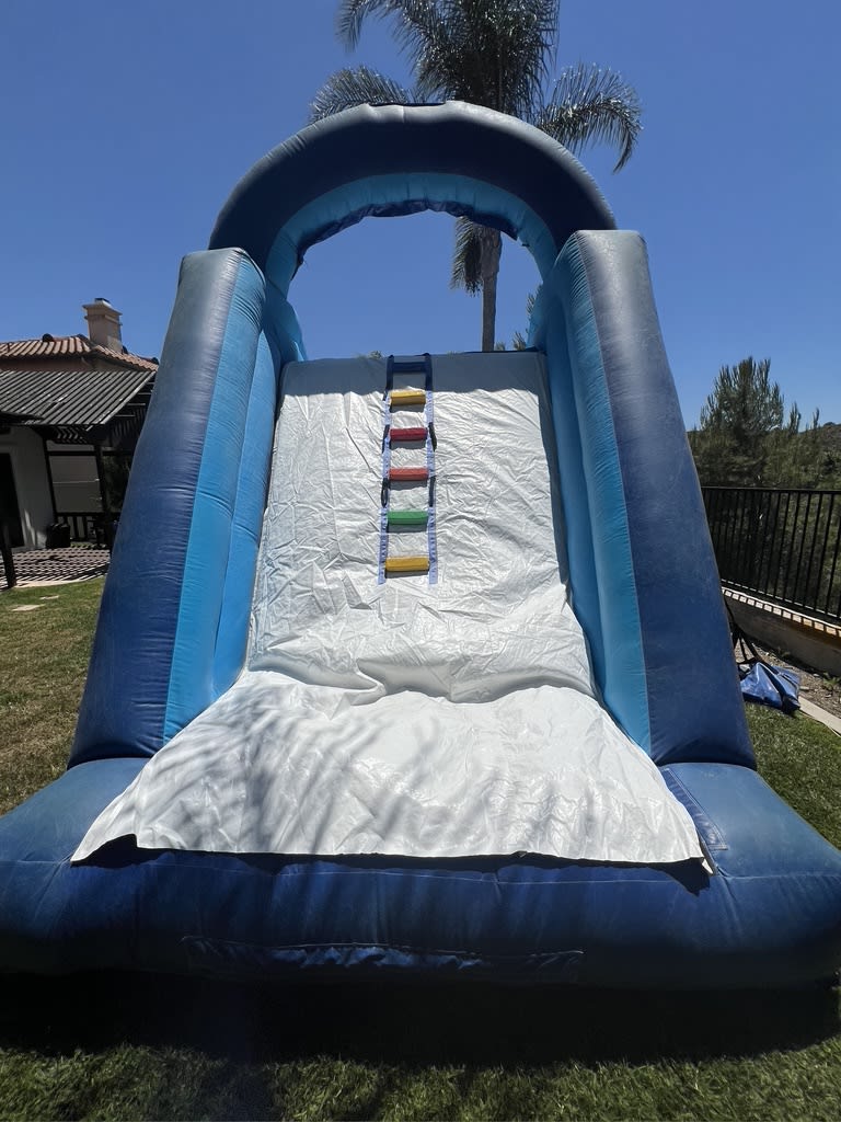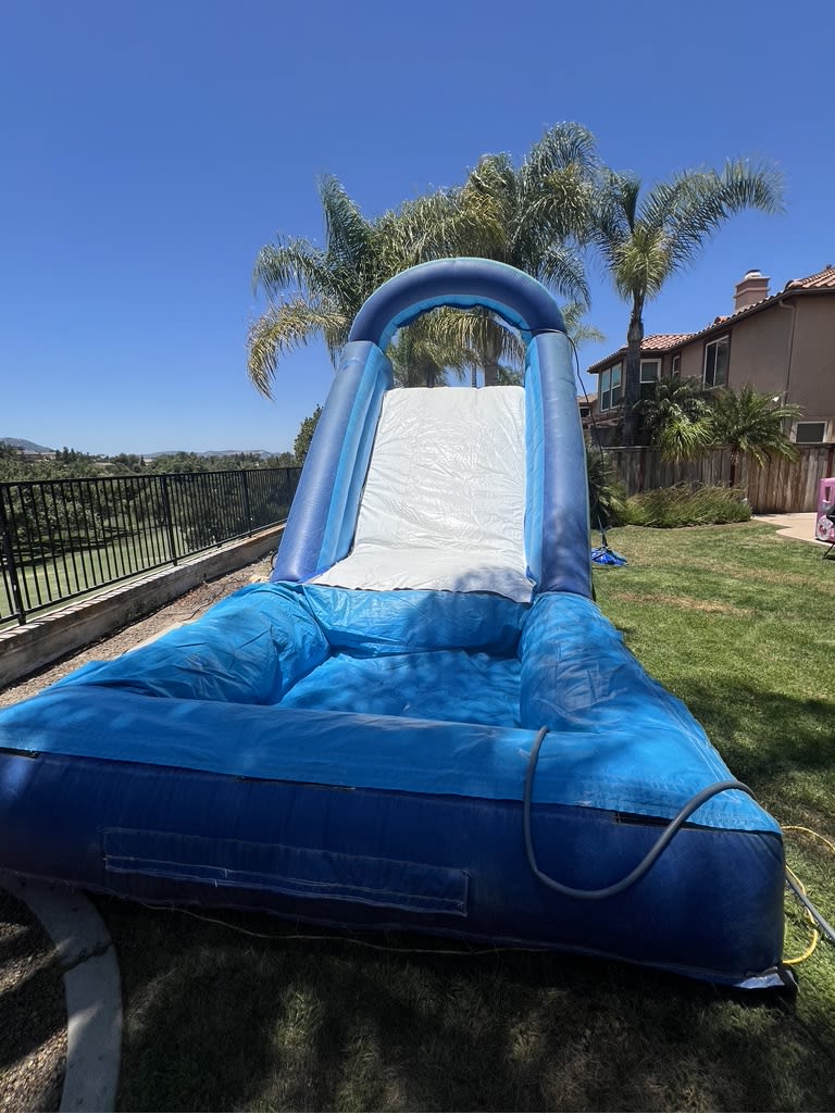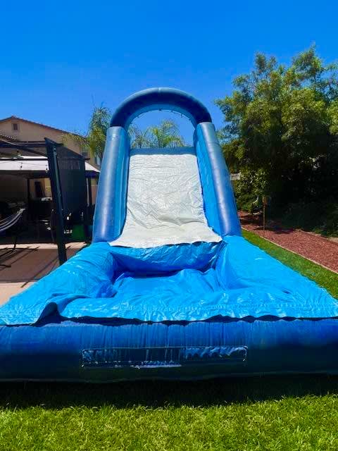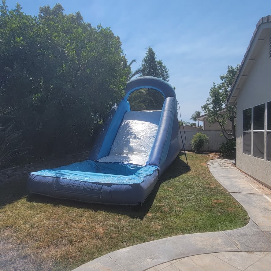 Stay cool and beat the heat with our refreshing Standard Blue & White Water Slide! Climb up the back to reach the top and then slide down the 10-foot tall slide to splash into the 8' x 8' pool, which is 2 feet deep.You can also position the water slide at the deep end of your pool for a direct slide-in. Please note this is at your own risk.. At All 4 Fun Jumpers, we understand that summers can get hot, but our water slide ensures you have a splashing good time while keeping cool. Whether you're planning a backyard party, corporate event, or any special occasion, our water slide is a perfect addition.