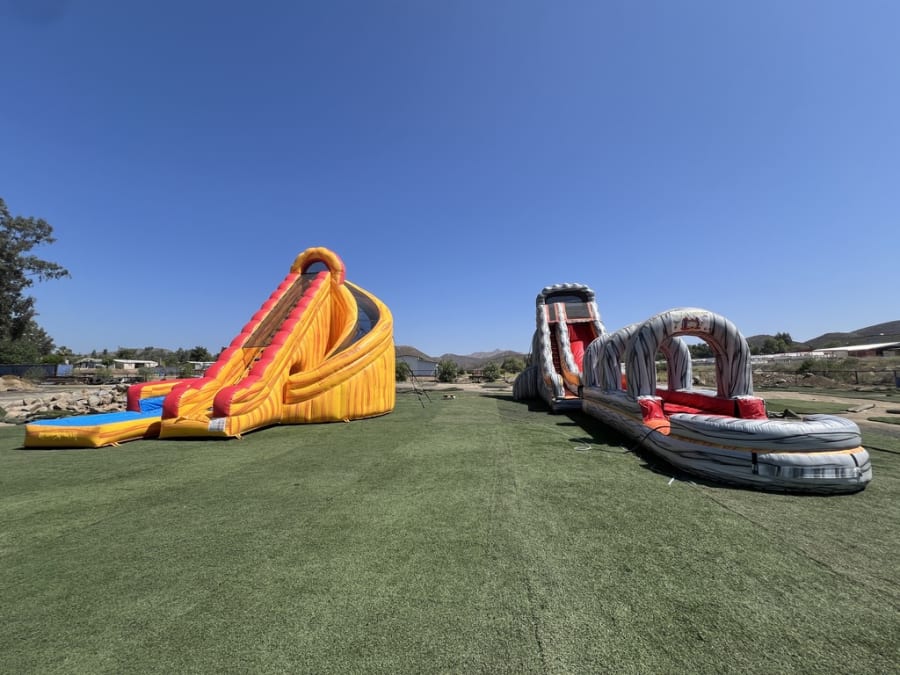 • You will need to provide 2 water hoses. Our technicians will need to use 1 hose to secure it onto our attachment on the slide, which will be removed at pickup. You will need the other hose to fill the pool.