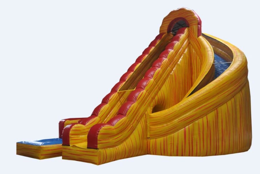 The Curve Water Slide is a thrilling 22-foot tall slide with a unique curve that goes right under the slide before splashing into a deep pool. This slide provides an exhilarating experience, leaving your guests in awe of its size and excited for the rush of excitement it brings. Sliding under the curve feels like entering a cave, adding to the fun.
