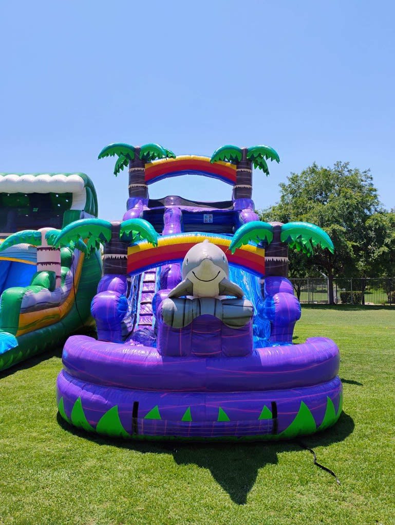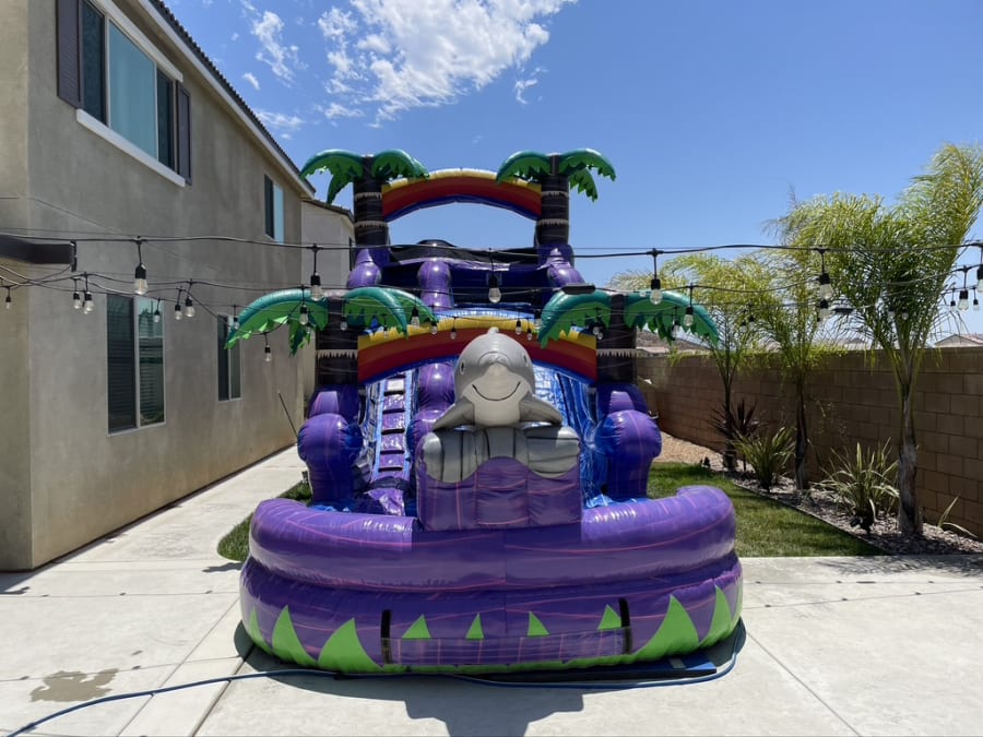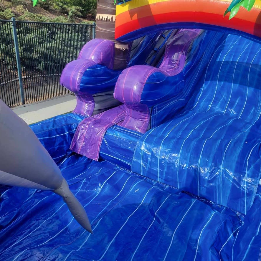 Immerse yourself in an exhilarating adventure with our Dolphin Slide at All 4 Fun Jumpers! This incredible slide stands tall at 15 feet, and with easy-to-access steps located upfront, you'll have a perfect view of the excitement. Our Dolphin Slide is designed for both safety and maximum enjoyment, providing a supervised and continuous sliding experience without the need to exit and re-enter.
