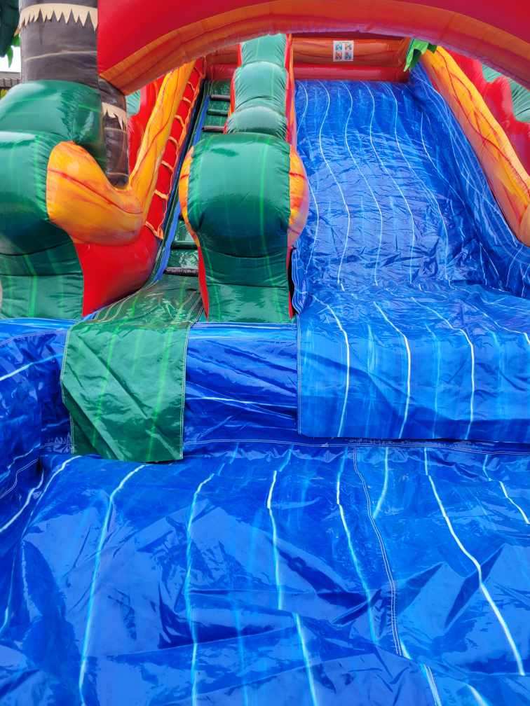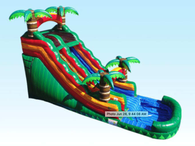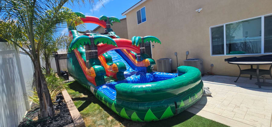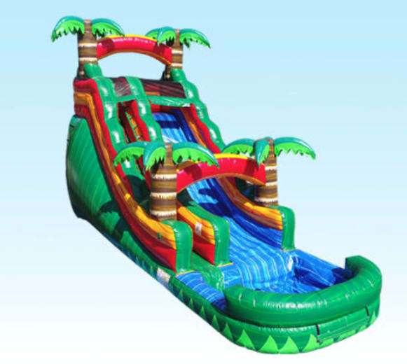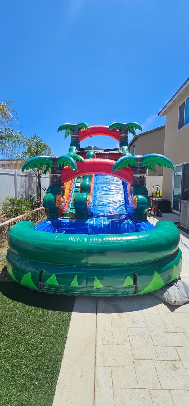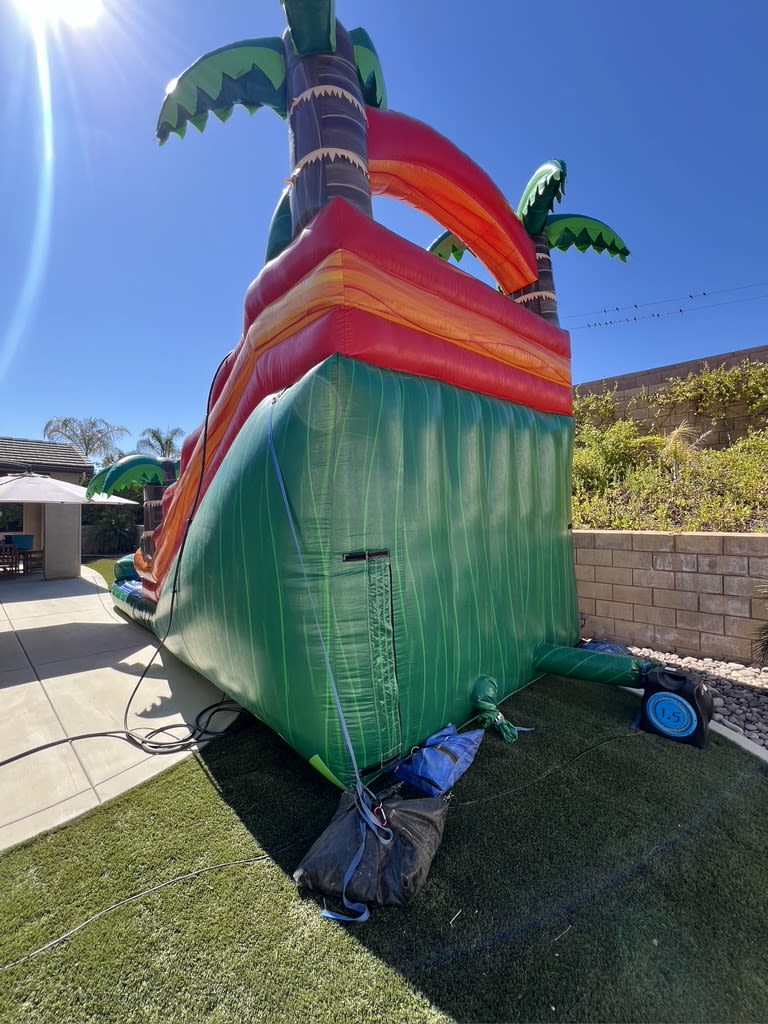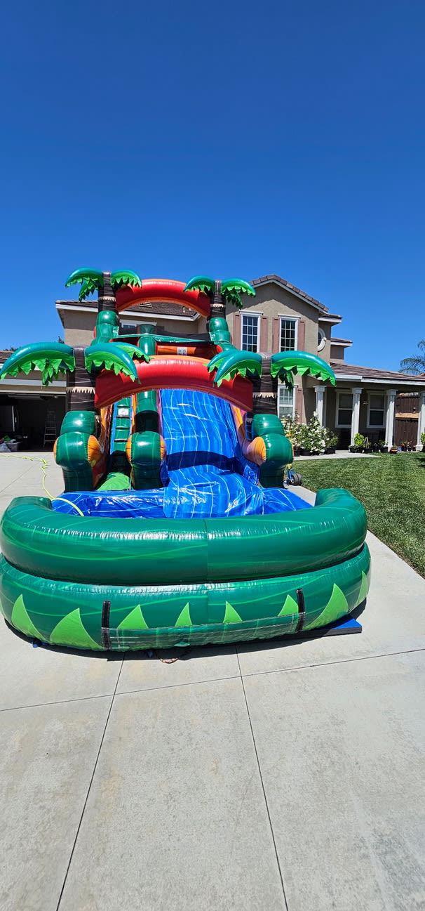 All 4 Fun Jumpers introduces our 15 foot Green Tropical Water Slide, where you can experience the feeling of being in the tropics right in your backyard! This beautiful slide is perfect for those scorching hot summer days, providing endless fun for kids and adults alike.