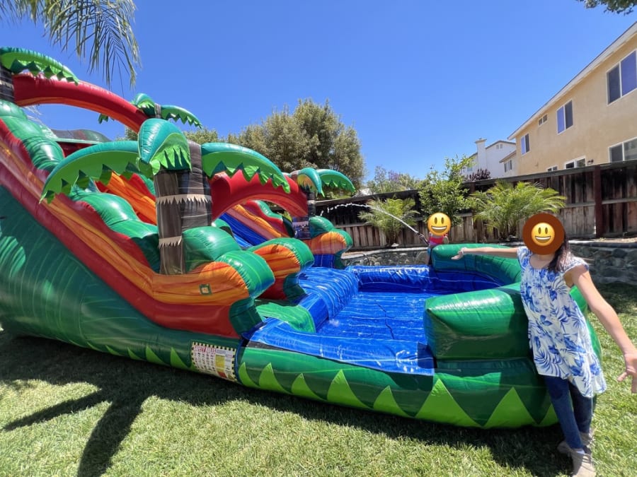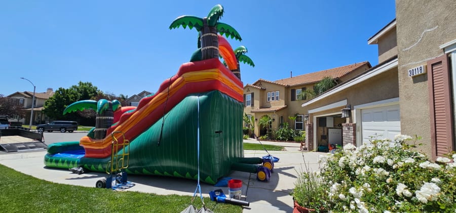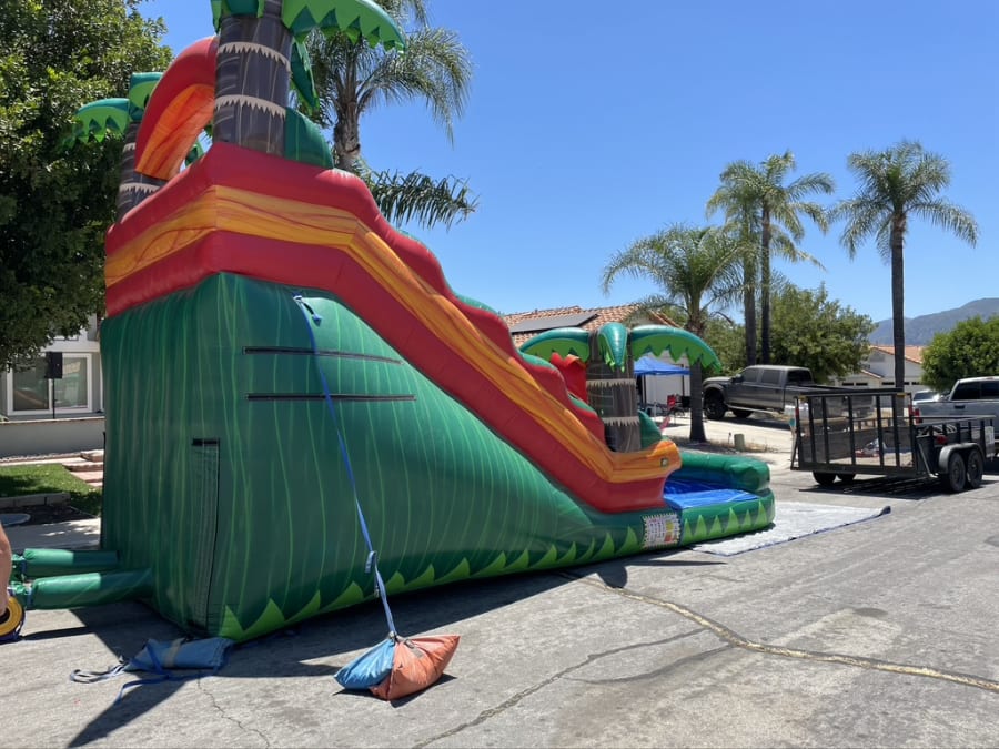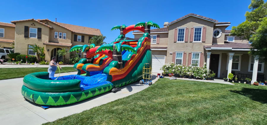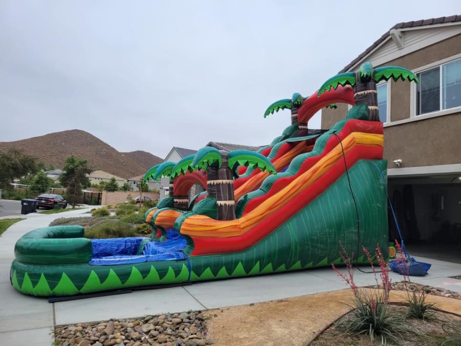 You can conveniently book the Green Tropical Water Slide right here, or you can call or text us at (951) 600-8011, you may also email us info@all4funjumpers.com or fill out our contact form here. We proudly serve Temecula, Menifee, Murrieta, Wildomar, Winchester, french Valley, Suncity, Lake Elsinore, Canyon Lake, Canyon Lake, Nuevo and all the surrounding cities, and we can't wait to bring the tropical vibes to your event!