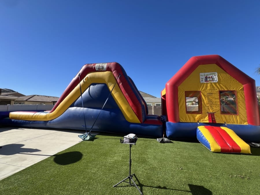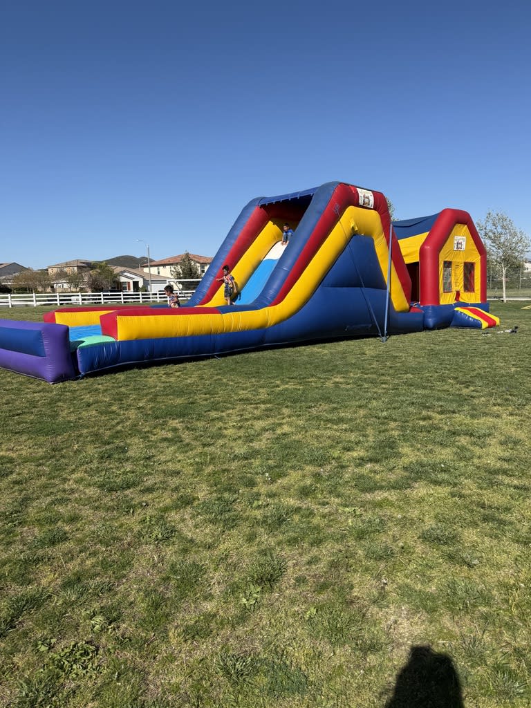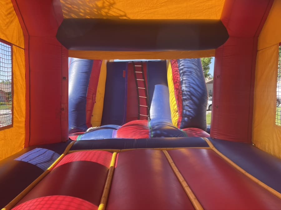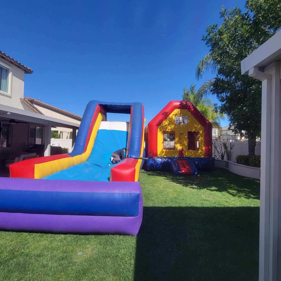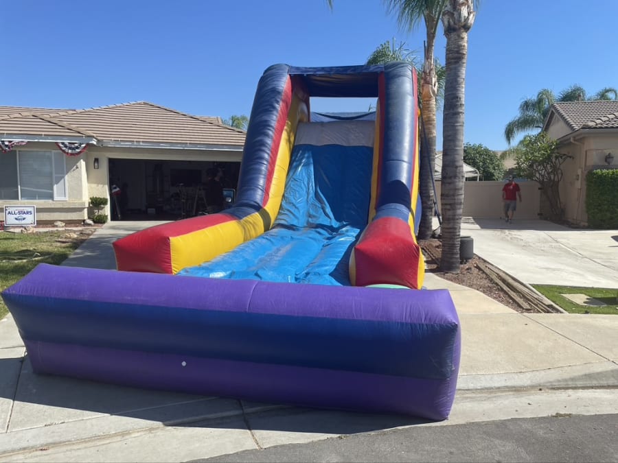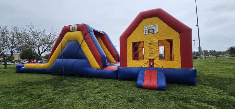 All 4 Fun Jumpers would love for you to experience non-stop fun with our 62-foot Jumbo 3 in 1 Combo, suitable for wet or dry use! This year-round Jumper with Slide Combo guarantees maximum entertainment, featuring a 16'x16' jump house and a thrilling 12ft tall slide. When used wet, the slide's bottom transforms into a slip n slide. Perfect for birthdays, family reunions, business functions, churches, and schools. Explore our range of waterslides like the 22ft Volcano with a pool or the Double Lane Slip N Slide or the 22ft Curve Water Slide along with Canopies, Tables, Chairs, and exciting Lawn Games. Don't miss our Interactive Games like Air Racer, Blink Blink Challenge, and Dart Soccer.