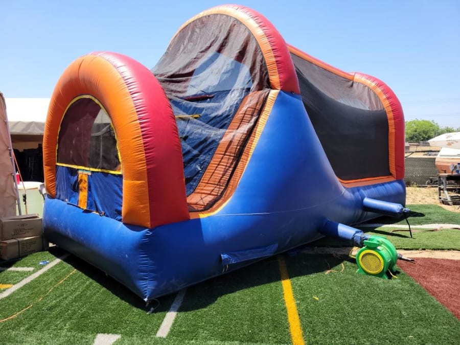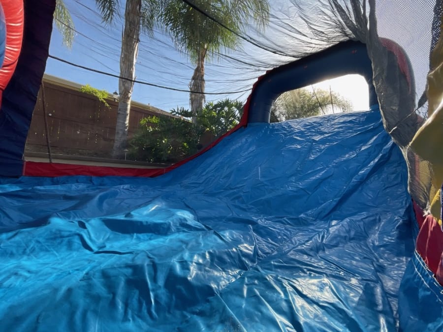 Introducing the 25ft x 12ft Super Slide 2 WET USE by All 4 Fun Jumpers, your go-to choice for exciting inflatable fun in Menifee, Temecula, Murrieta, Winchester, Wildomar, Lake Elsinore, Canyon Lake, Nuevo, and surrounding areas. The Super Slide #2 is perfect for toddlers and older kids. Standing 7 feet tall, it creates small puddles when used wet, ideal for little ones who love to splash. It can also be used as a dry slide, offering versatility for any event. Whether wet or dry, the Super Slide #2 promises an unforgettable and enjoyable experience for everyone.