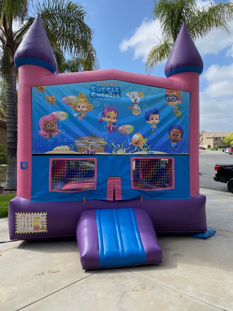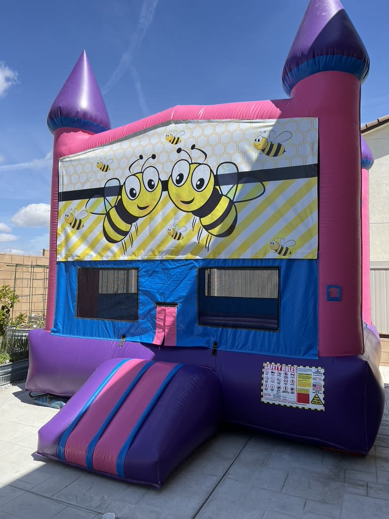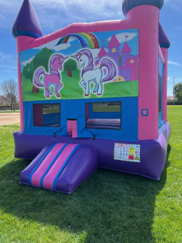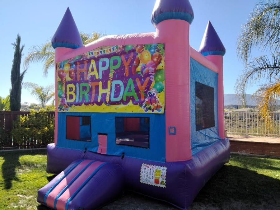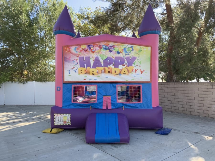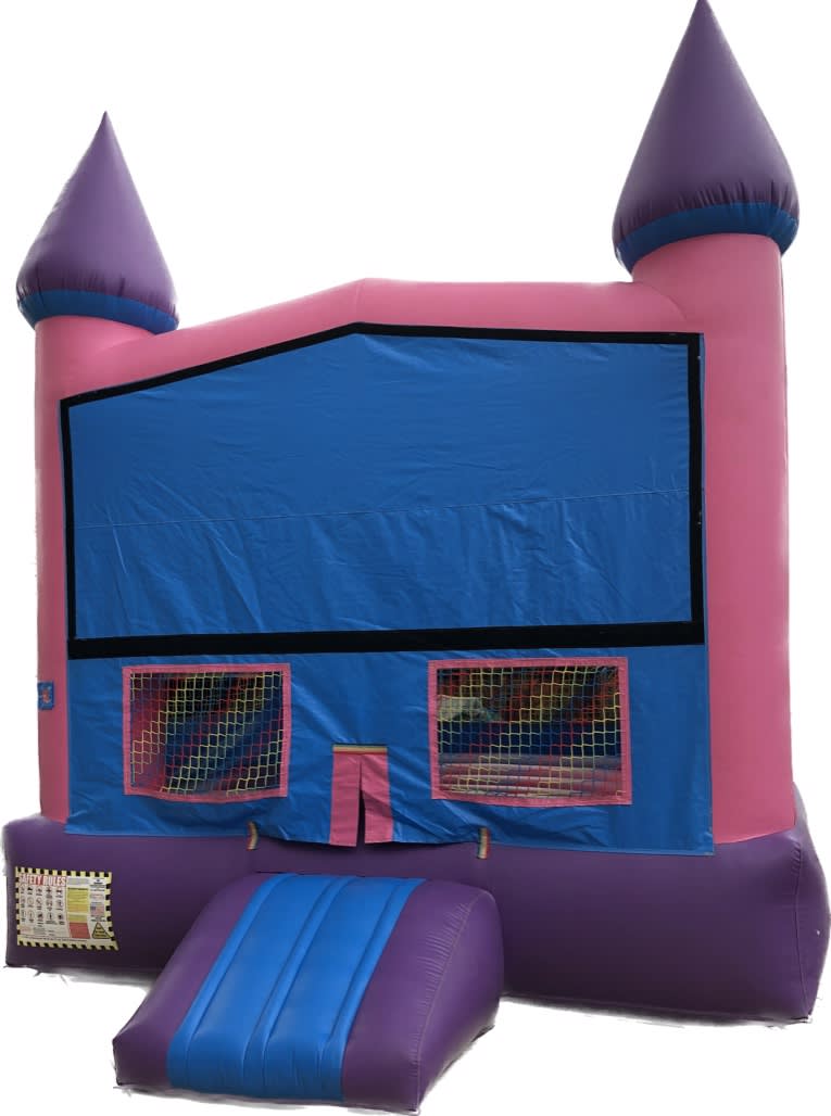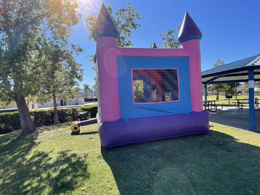 Booking is a breeze – reserve online, text, or call us at (951)600-8011. Proudly serving Temecula and neighboring cities, our Modular Jumpers offer various color options, including vibrant Standard Primary, engaging Castle with basketball hoop, charming Girl Modular, and Pink & Purple versions.Pink and Purple Castle Modular Jumper