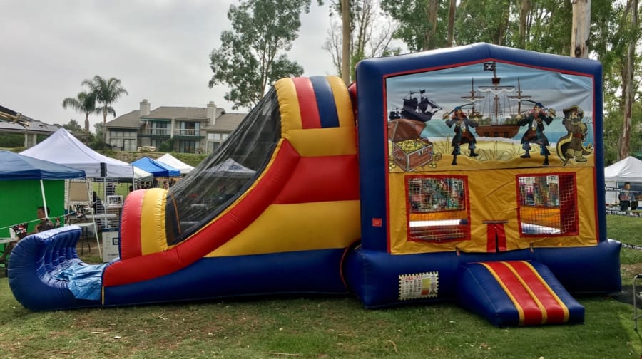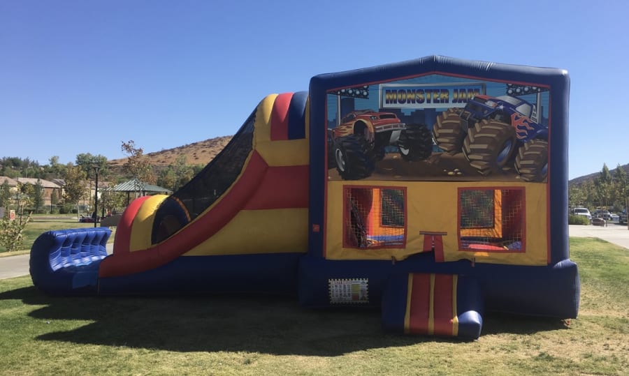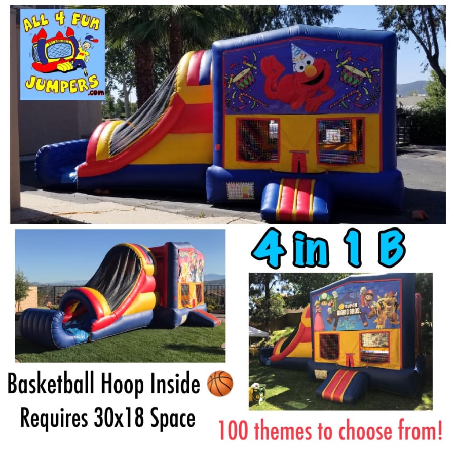The 4 in 1 Combo B features four engaging activities: jumping, climbing, sliding, and a built-in basketball hoop. On hot summer days, take the fun up a notch by attaching a pool, turning it into a refreshing 5 in 1 Combo. With over 200 themes available, you can customize the look to match your event perfectly.